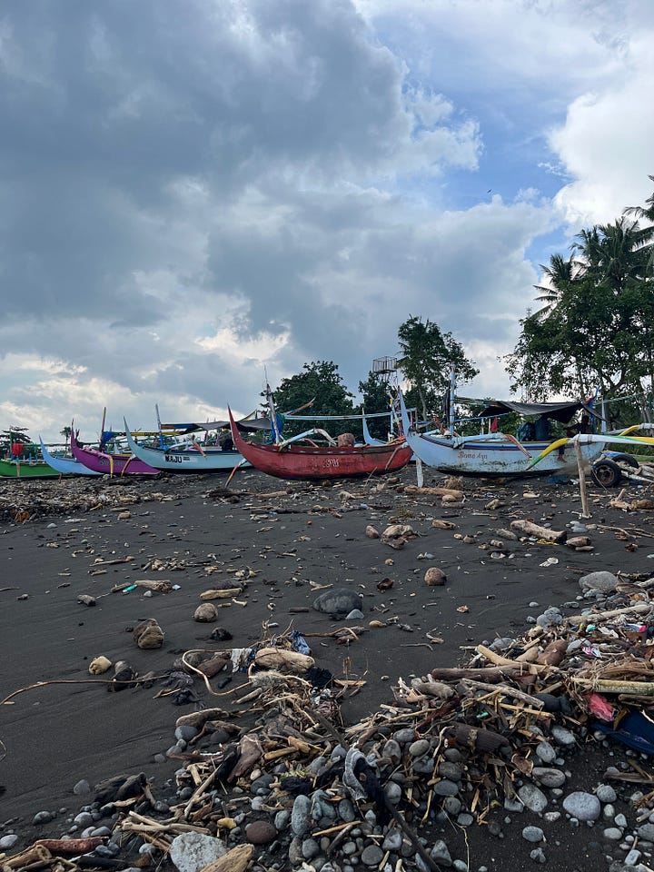 My morning coffee has looked differently lately. I’m not at my desk or in the kitchen. I’m sat at a bench table looking out to sea, watching surfers bobble and fisher-boats return after a night of catching barracuda. If it wasn’t so cloudy I’d be able to see the coast of Java. This is our last morning in Medewi, Bali.